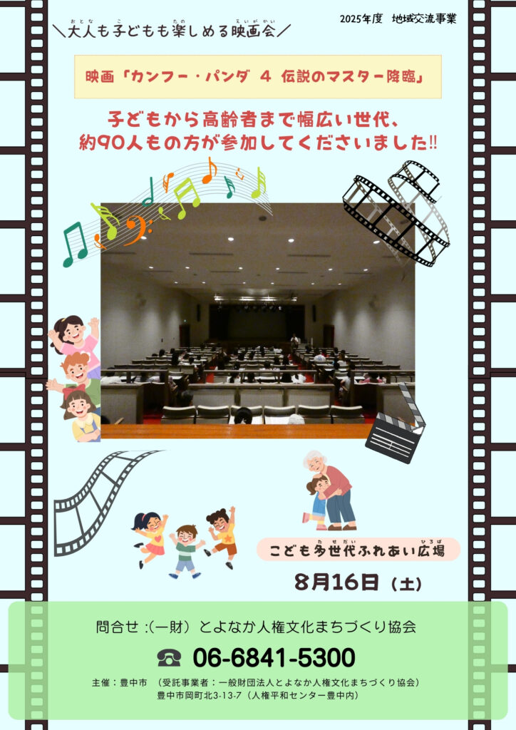 映画では、主人公ポーが、「平和の谷」を守るため仲間とともに冒険に挑みます。その中で描かれるのは、仲間と力を合わせる大切さや、自分らしさを信じて前に進む勇気!ユーモアあふれるアクションとコミカルなやり取りに、笑いが起こる場面も多く、子ども達にもわかりやすく、楽しみながら大切なメッセージを受け取ってもらえたのではないかと思います。上映後には交流会を行い、子ども達が積極的に手を挙げ「面白かった!」「楽しかった!」との感想を発表してくれました。特に印象的だったのが、未就学児を含めた小さなお子さん達も最後まで集中して観ていたことです。今回の上映会が、参加者の皆さんにとって夏休みの思い出の一つとなり、映画を通して、平和や仲間の大切さを考えるきっかけになっていただければ幸いです。