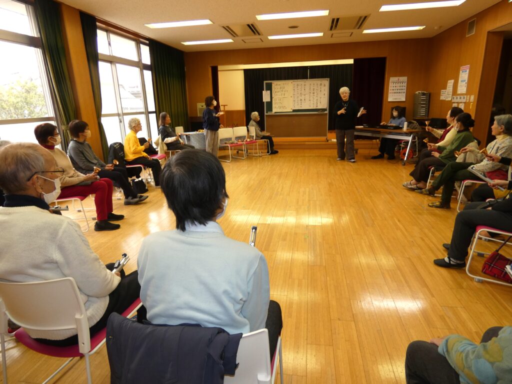 今年初めての“オリーブの園さん”の歌の事業には、たくさんの方が参加してくださいました。音楽に合わせて講師が一人ひとりの席を回りながら挨拶をすると、参加者のみなさんも自然と笑顔になり、会場は和やかな空気に包まれました。節分の時期ということもあり、全員で元気よく「鬼は外!福は内!」と声を出す場面も。講師の「巻き寿司や豆は食べましたか?」という問いかけに「豆を80個食べるのはきついのよ〜」との声があがり、会場は思わず笑いに包まれました。続いて、楽器「トーンチャイム」を用いた「春よ来い」の合奏では、澄んだ音色が会場いっぱいに響き渡りました。また、童謡に合わせたお手玉遊びや音楽に合わせたストレッチにも、皆さん意欲的に挑戦!楽しみながら心身を動かす充実した時間となりました。締めくくりには、それぞれお気に入りの楽器を手に「二人は若い」を元気いっぱいに合唱。終始笑顔の絶えない、活気あふれるひとときとなりました。