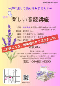 また、ご希望者がいらっしゃるようであれば、できる範囲で話し合いながらご参加いただけるような講座を開催していきたいと思っています。